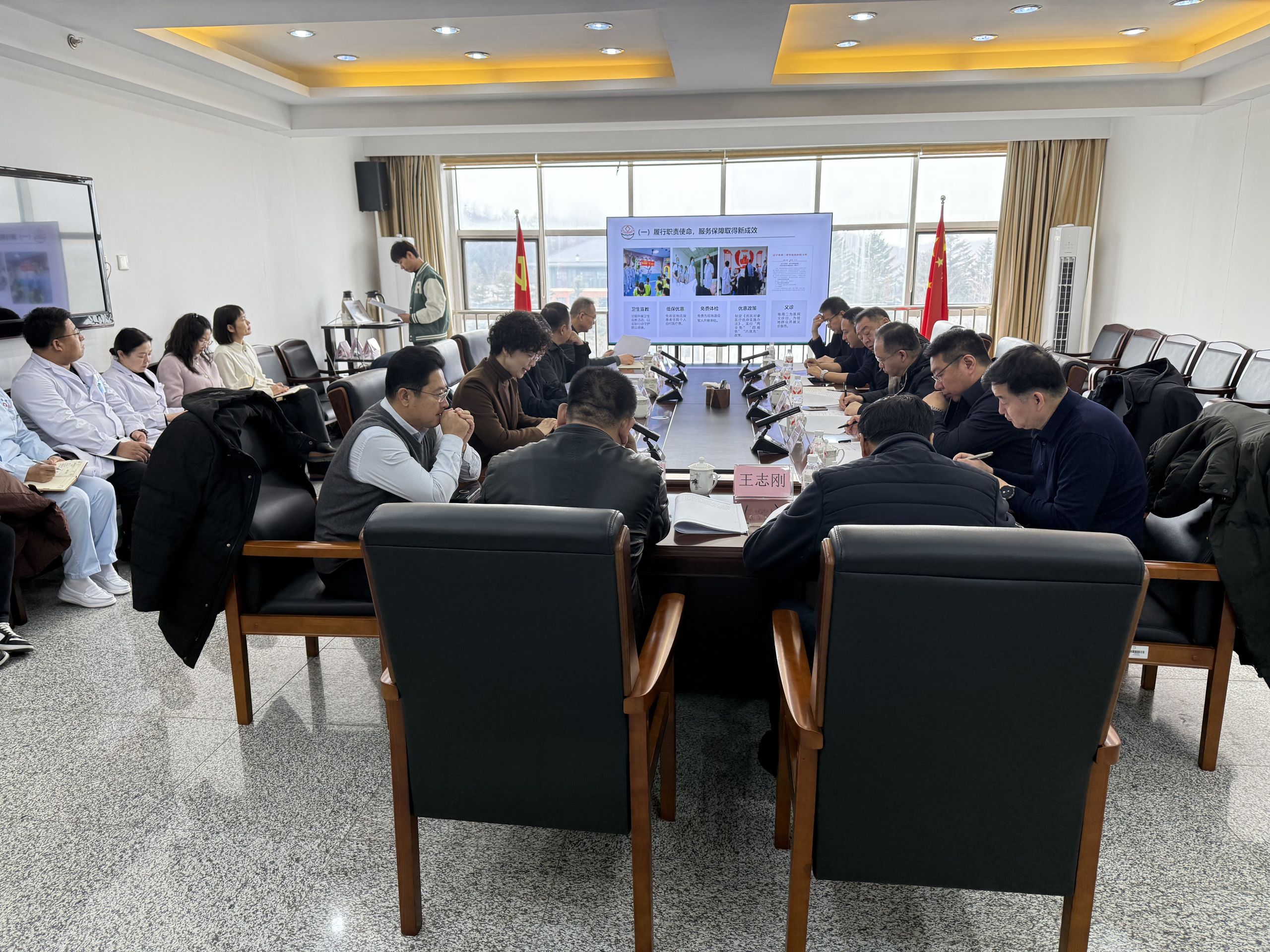 12月15日上午,甘肃省退役军人事务厅党组成员、副厅长常大伟带队,拥军优抚处处长魏凡凯,拥军优抚处三级调研员杨柳岗,甘肃省荣军优抚医院党委书记、院长王治华,省荣军优抚医院办公室副主任罗鑫,白银市退役军人事务局四级调研员、拥军优抚科负责人王志刚,白银市平川区退役军人事务局局长王宪,白银市平川区退役军人事务局副局长武成名,莅临我院开展优抚医院建设发展专题调研。辽宁省退役军人事务厅党组成员、副厅长刘国成,双拥办主任何昱林,丹东市退役军人事务局副局长殷洪亮,辽宁省第二荣军优抚医院党委书记赵雨民,院长黄晓峰,副院长葛成立等陪同调研。