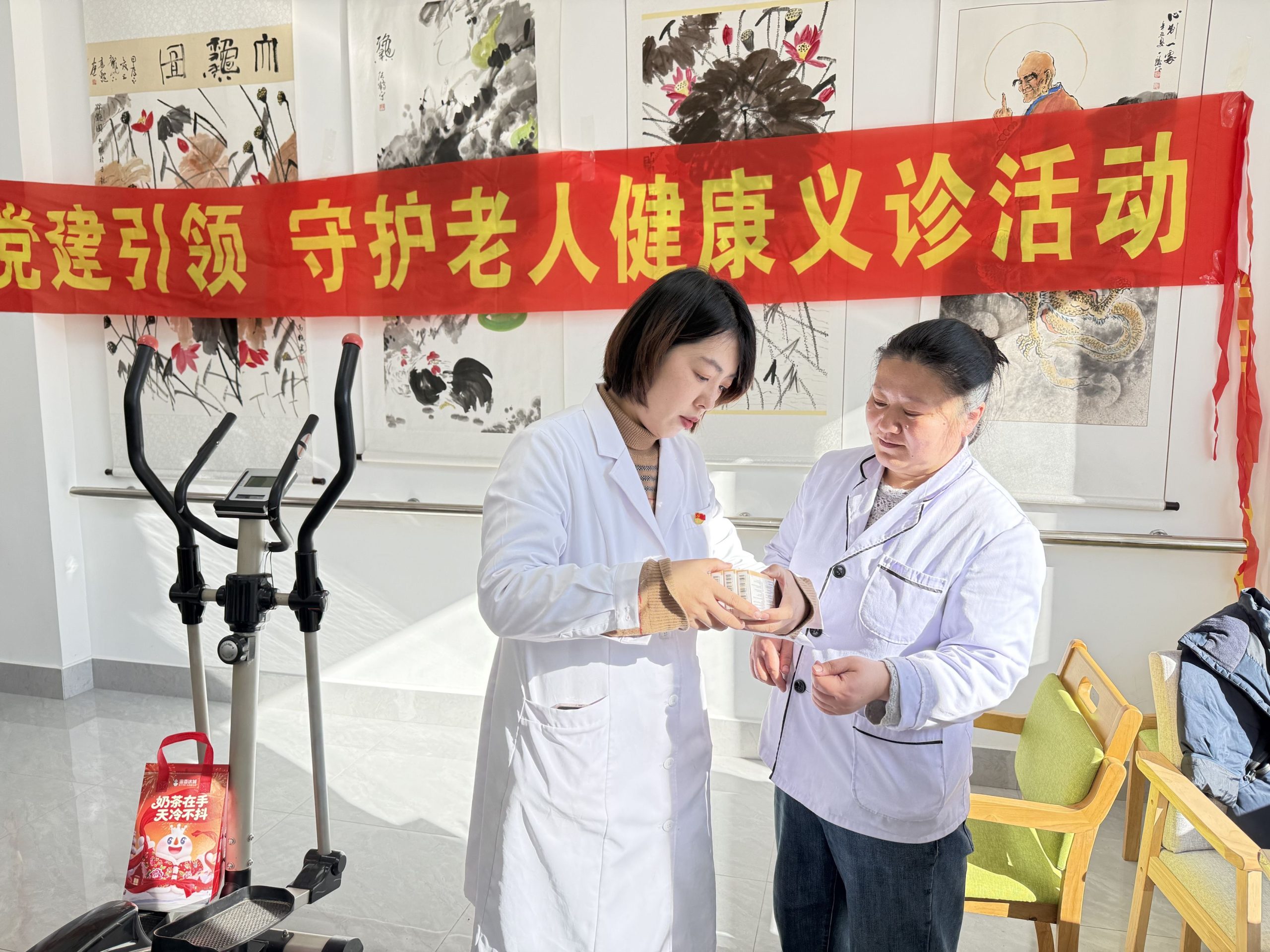 仪式结束后,医院医护团队在敬老院开展健康义诊活动,为长者们及疗养人员提供健康体检、用药指导、护理知识讲解等服务,免费赠送1000余元常用药品,将专业医疗服务和暖心关怀送到老年人身边,受到老人们广泛赞扬。