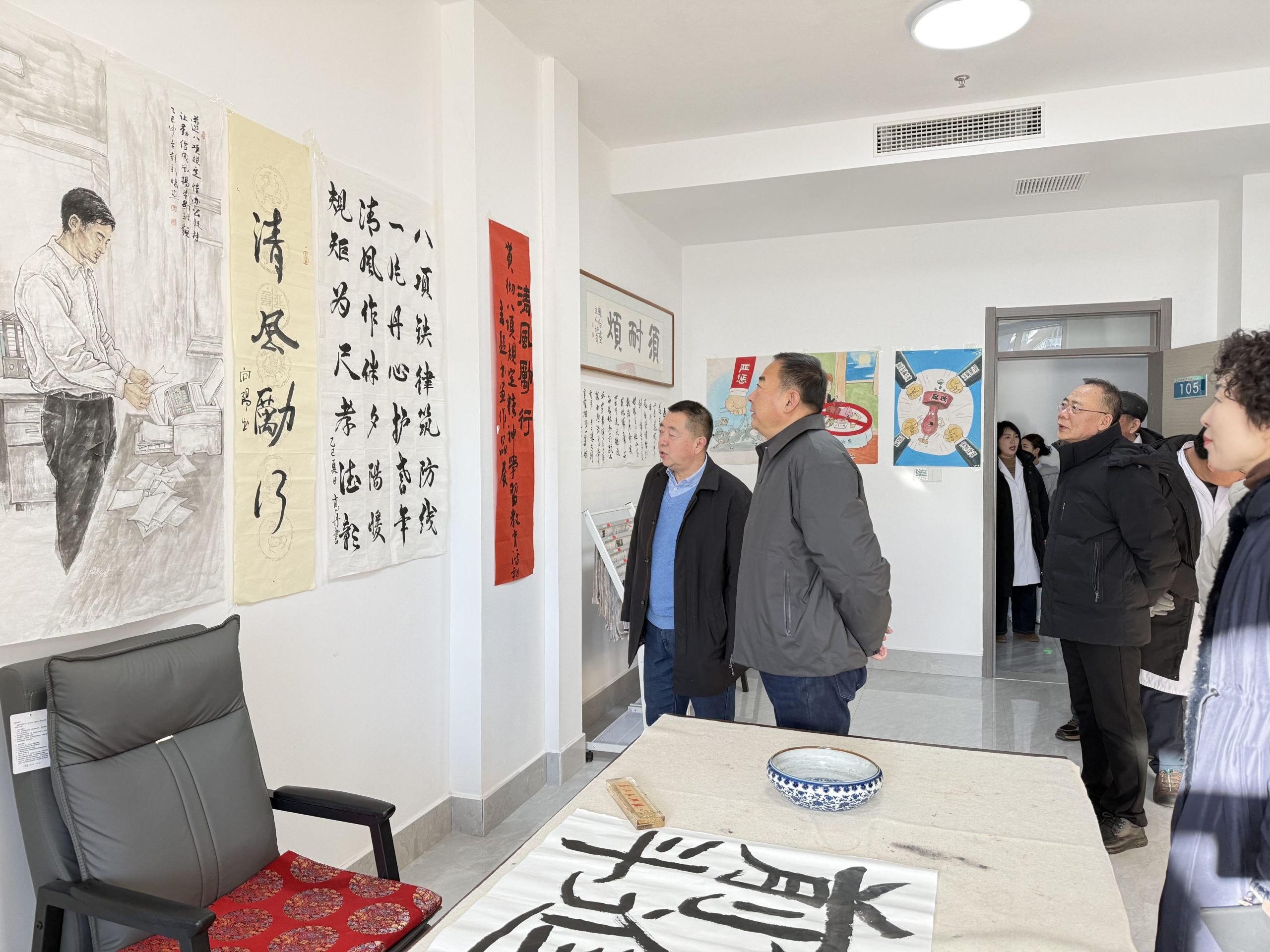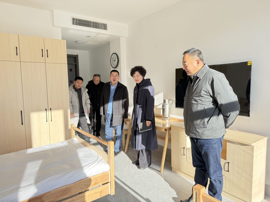 随后,领导班子与医护人员一行实地参观了敬老院养老房间、活动室、书画室、健身室等区域,深入了解基地建设情况。