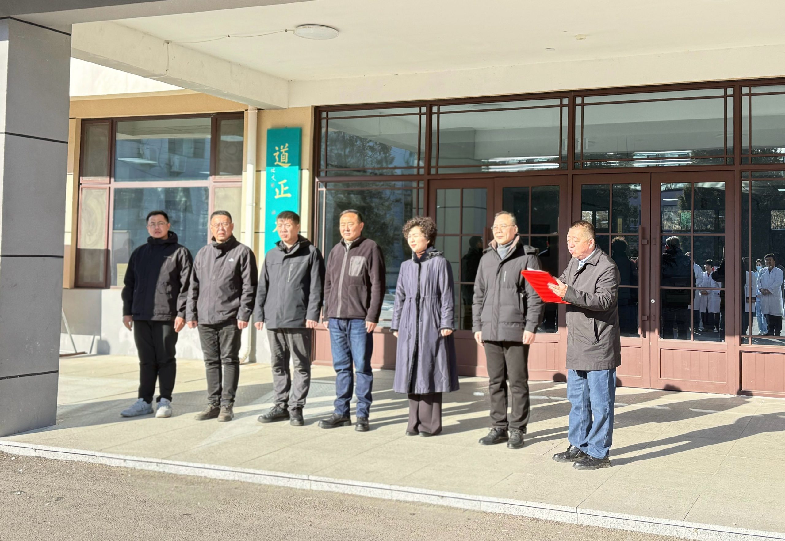 为弘扬尊老敬老传统美德,切实关爱老年群体身体健康,1月28日上午,辽宁省第二荣军优抚医院领导班子带领医护团队走进五龙背敬老院,开展“党建引领・守护老人健康”义诊活动,同时医院“医者仁心敬老助残基地”正式挂牌设立,医院党委书记赵雨民,院长黄晓峰,振安区民政局局长丁振波,振安区民政事务服务中心主任孙巍,振安区五龙背镇副镇长滕鹏,五龙背镇敬老院院长张启东共同为基地揭牌,副院长葛成立及全体医护人员参加揭牌仪式。